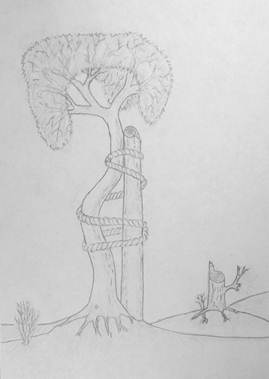 рисунке, изображающем искривленное дерево, подвязанное к столбику. Именно этим